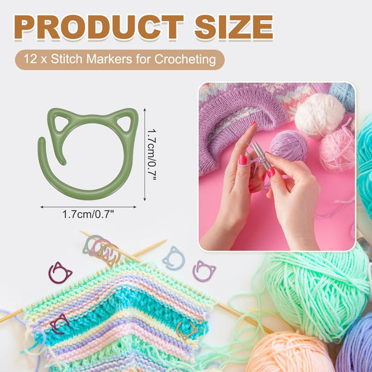 PATIKIL Cat Crochet Stitch Markers, 12 Pack Stitch Marker for Knitting Crocheting Supplies Cute Metal Spiral Knit Clip Ring Counters for Crochet Yarn DIY Crafts, Green