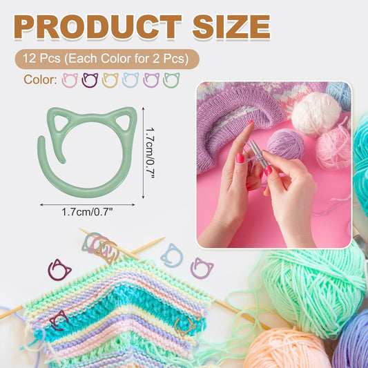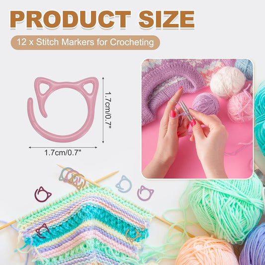 PATIKIL Cat Crochet Stitch Markers, 12 Pack Stitch Marker for Knitting Crocheting Supplies Cute Metal Spiral Knit Clip Ring Counters for Crochet Yarn DIY Crafts, Multicolor