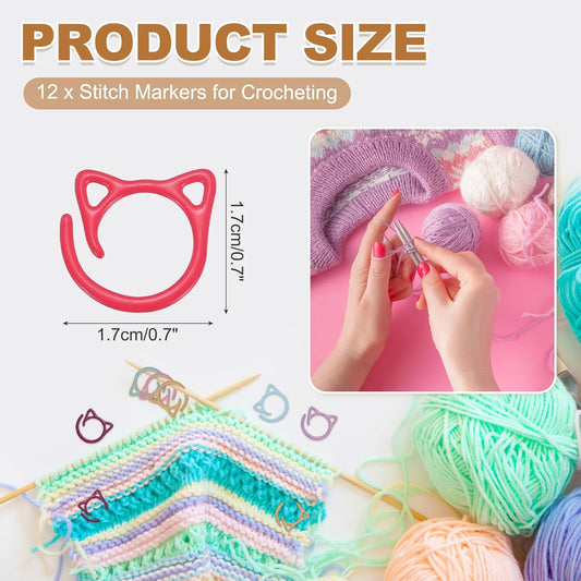 PATIKIL Cat Crochet Stitch Markers, 12 Pack Stitch Marker for Knitting Crocheting Supplies Cute Metal Spiral Knit Clip Ring Counters for Crochet Yarn DIY Crafts, Red