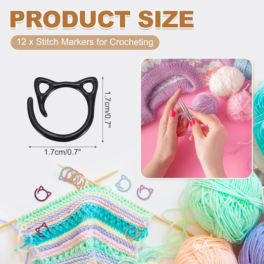 PATIKIL Cat Crochet Stitch Markers, 12 Pack Stitch Marker for Knitting Crocheting Supplies Cute Metal Spiral Knit Clip Ring Counters for Crochet Yarn DIY Crafts, Black