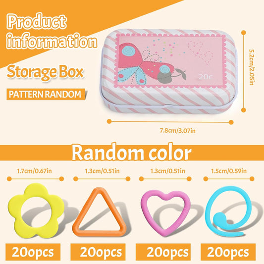 Jmuiiu 80PCS Metal Stitch Markers, 4 Styles Colorful Crochet Stitch Markers for Knitting Crocheting Clothing Tag Diy Craft Project with Storage Box