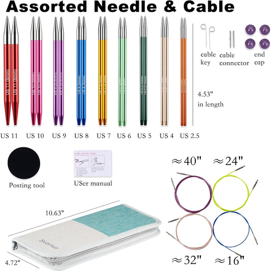 Svartur Interchangeable Circular Knitting Needles Set, with Multicolored Circular Knitting Needles and Cables, Accessories and Knitting Needle Storage Case, 9 Pairs