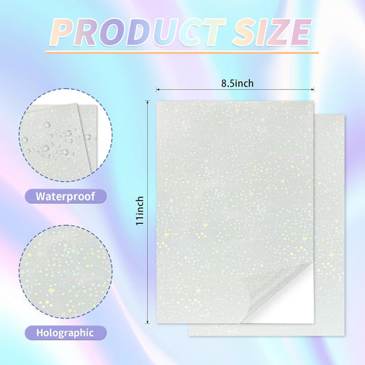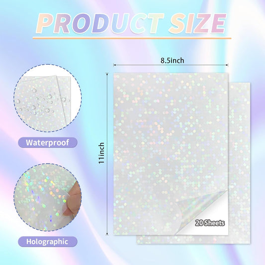 20 Sheets Holographic Sticker Paper,8.5x11 Inch Clear Printable Vinyl Sticker Papers,Self-Adhesive Waterproof for Inkjet/Laser Printer(Clear)