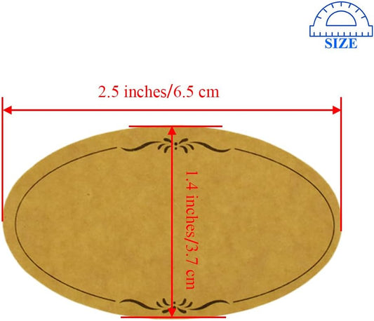 HAHIYO 1.4 * 2.5In 500P Oval Brown Kraft Stickers with Artistic Border - 4 Unique Styles Blank Kraft Labels Roll to Write On Durable Dot Stickers for Jar Canning Labels Price Tags Store Organizing