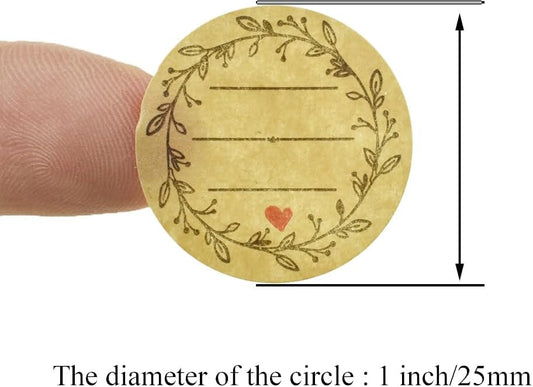 HAHIYO 2In 500P Round Natural Brown Kraft Stickers with Green Leaf Wreath Design - 4 Unique Styles Blank Kraft Labels Roll to Write On Durable Dot Stickers for Jar Canning Price Tags Store Organizing
