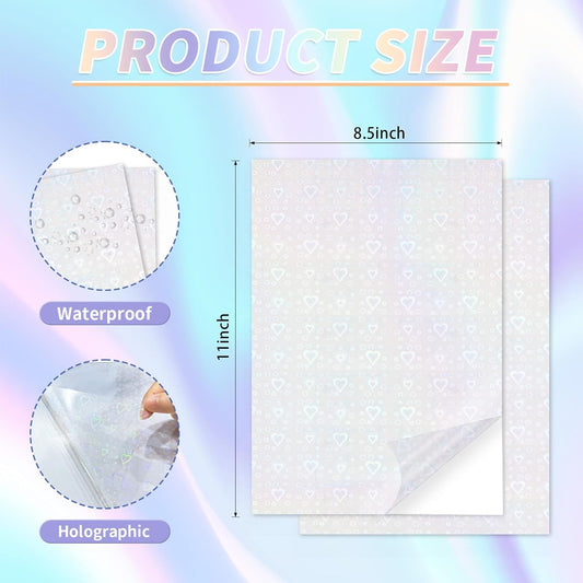 20 Sheets Holographic Sticker Paper,8.5x11 Inch Clear Printable Vinyl Sticker Papers,Self-Adhesive Waterproof for Inkjet/Laser Printer(Clear Heart)
