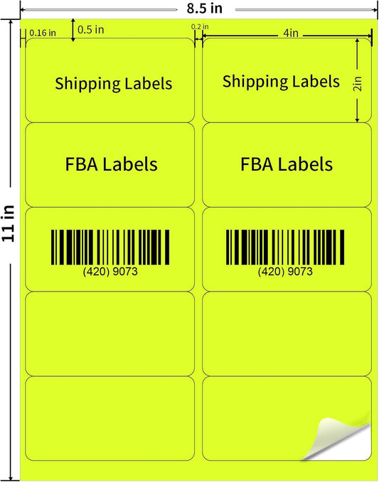 STARLIBOO Shipping Labels Stickers, 2"×4" Printable Fluorescent Mailing Labels for Laser/Inkjet Printing- Matte, Permanent Adhesive Stickers (20 Sheets, Fluorescent Yellow)