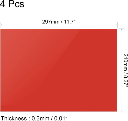 uxcell 4Pcs A4 Gel Light Lighting Filter Overlay Transparent Color Correction Plastic Vinyl PVC Sheets Photography Television Red,0.3mm