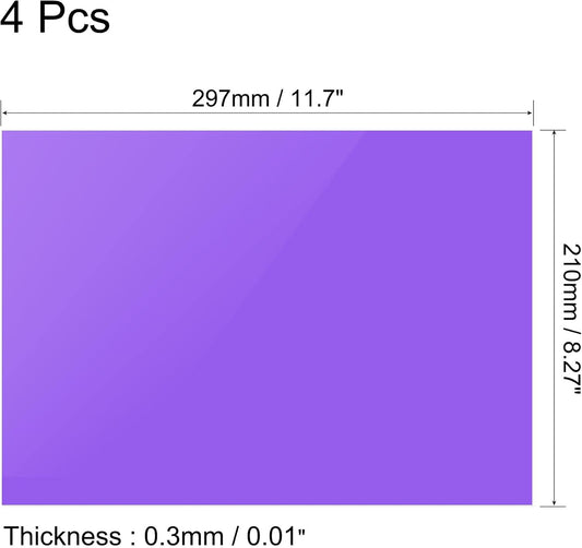 uxcell 4Pcs A4 Gel Light Lighting Filter Overlay Transparent Color Correction Plastic Vinyl PVC Sheets Photography Television Purple,0.3mm
