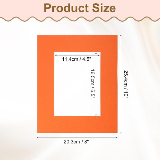 Picture Mats, 8 x 10 for 5 x 7 Pictures Acid Free White Core Bevel Cut Frame Mattes for Display Art Measuring, Orange