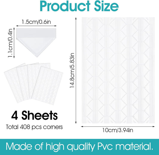 408PCS Photo Corners Self-Adhesive Acid Free Photo Corners Scrapbook Picture Corner Picture Mounting Corner for DIY Scrapbook, Album, Journal, Memory Books
