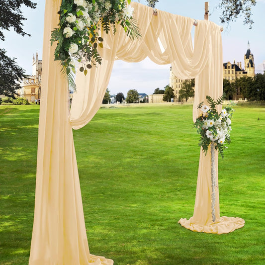 VACVELT Wedding Arch Draping Fabric Champagne Chiffon, 2 Panels Sheer Drapes 30 Inch x 20ft Chiffon Backdrop Curtain Decor, Outdoor Sheer Drapery for Ceremony Party Ceiling