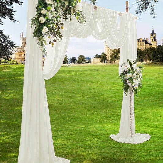 VACVELT Wedding Arch Draping Fabric, Ivory Chiffon, 2 Panels Sheer Drapes, 30 Inch x 20ft Chiffon Backdrop Curtain, Outdoor Sheer Drapery for Ceremony Party Ceiling