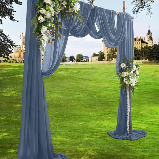 VACVELT Wedding Arch Draping Fabric Dusty Blue Chiffon, 2 Panels Sheer Drapes 30 Inch x 20ft Chiffon Backdrop Curtain Wedding Decor, Outdoor Sheer Drapery for Ceremony Party Ceiling