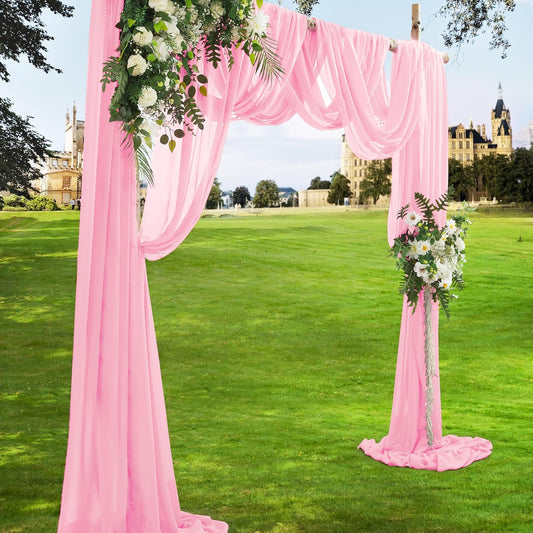 VACVELT Wedding Arch Draping Fabric Blush Pink Chiffon, 2 Panels Sheer Drapes 30 Inch x 20ft Chiffon Backdrop Curtain Wedding Decor, Outdoor Sheer Drapery for Ceremony Party Ceiling