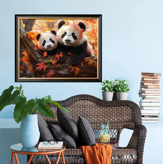 Leczany Cross Stitch Stamped Kit for Adults or Kids - Two Little Pandas | DIY Embroidery Starter Patterns Craft Kit Needlepoint for Beginner | 11CT, 3 Strands | 16.9x13 inches