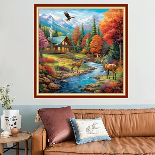 Joyhoor Stamped Cross Stitch Kits for Beginners, Needlepoint Kits for Adults, 11CT Counted Embroidery Kits-Late Autumn Elk 18x18 inchs