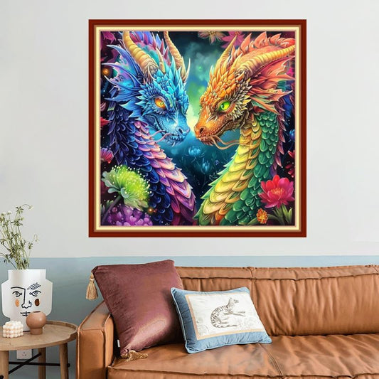 Joyhoor Stamped Cross Stitch Kits for Beginners, Needlepoint Kits for Adults, 11CT Counted Embroidery Kits-Colorful Dragon 18x18 inchs