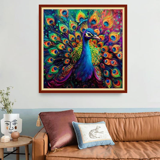 Joyhoor Stamped Cross Stitch Kits for Beginners, Needlepoint Kits for Adults, 11CT Counted Embroidery Kits-Colorful Peacock 18x18 inchs