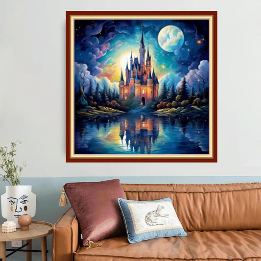 Joyhoor Stamped Cross Stitch Kits for Beginners, Needlepoint Kits for Adults, 11CT Counted Embroidery Kits-Magic Castle 18x18 inchs