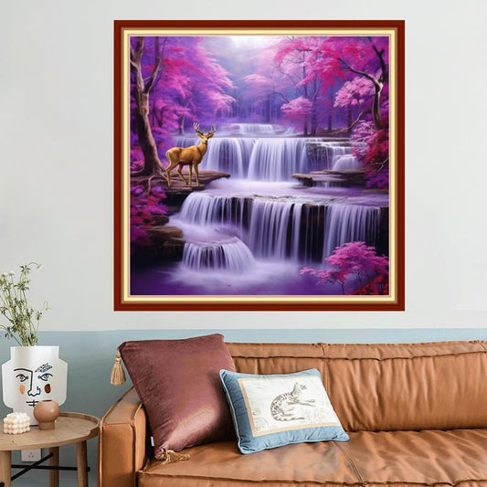 Joyhoor Stamped Cross Stitch Kits for Beginners, Needlepoint Kits for Adults, 11CT Counted Embroidery Kits-Enchanting Waterfall 18x18 inchs