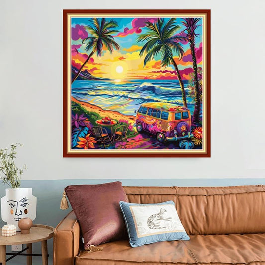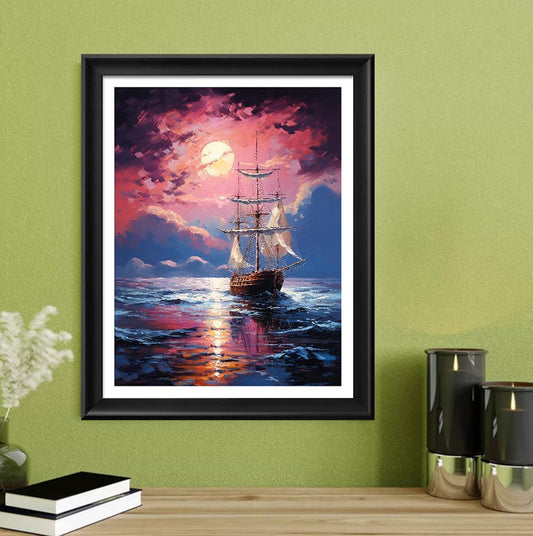 Leczany Cross Stitch Stamped Kit for Adults or Kids - Sailing and Sunset | DIY Embroidery Starter Patterns Craft Kit Needlepoint for Beginner | 11CT, 3 Strands | 13.4x17.7 inches