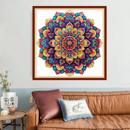 Joyhoor Stamped Cross Stitch Kits for Beginners, Needlepoint Kits for Adults, 11CT Counted Embroidery Kits-Colorful Mandala 18x18 inchs