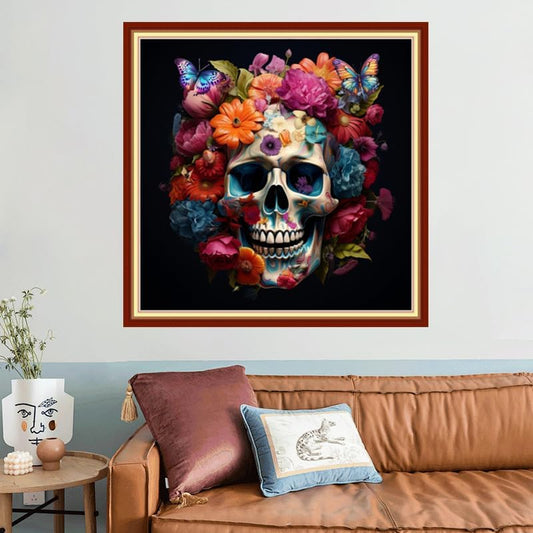 Joyhoor Stamped Cross Stitch Kits for Beginners, Needlepoint Kits for Adults, 11CT Counted Embroidery Kits-Skeleton Flower 18x18 inchs