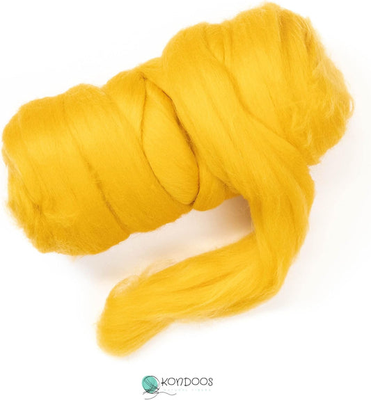 Colored Natural Wool roving, 8 OZ. Best Wool for Needle Felting, Wet Felting, handcrafts and Spinning. (Mustard)