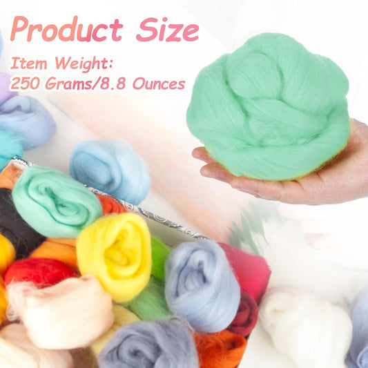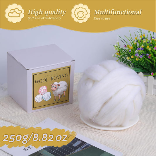 Wool Roving Bulk - 8.82oz/250g Super Wool Chunky Yarn, Wool Roving Top for Needle Felting, Soft Felting Wool Supplies for Hand Spinning, Felting, Blending, Weaving and DIY Craft