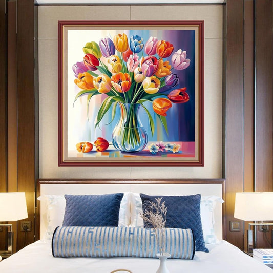 DMCXART Counted Cross Stitch Kits for Adults Needlepoint Kits Unprinted Cross Stitching Embroidery Kit 11CT Cross Stitch Supplies-Colorful Flowers Succulent Plants 18x18 inch