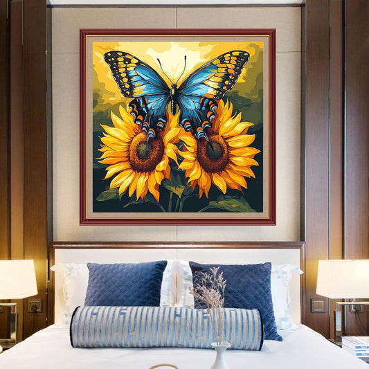 DMCXART Counted Cross Stitch Kits for Adults Needlepoint Kits Unprinted Cross Stitching Embroidery Kit 11CT Cross Stitch Supplies-Butterfly Sunflower 18x18 inch