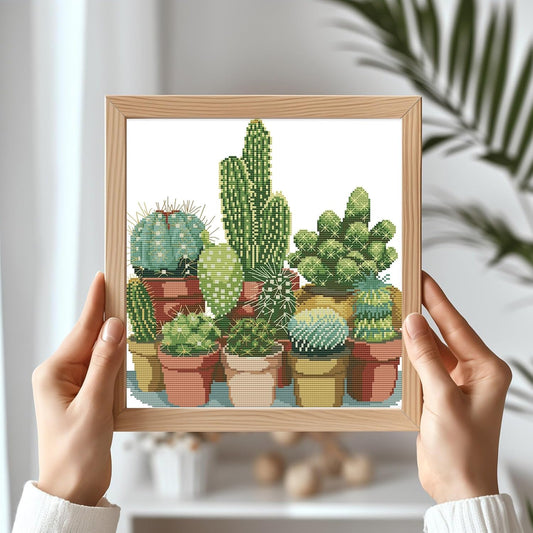 Maydiyer 11CT Stamped Cross Stitch Kits Pre-Printed Embroidery Kit, DMC Threads Needlework Sets-Cactuses 16.9×17.7 inch