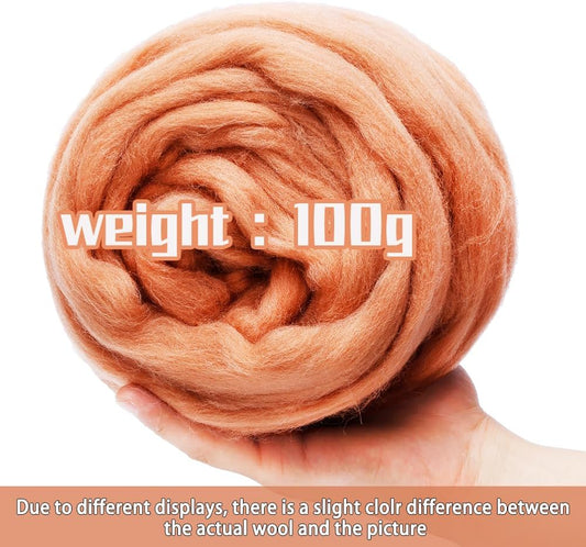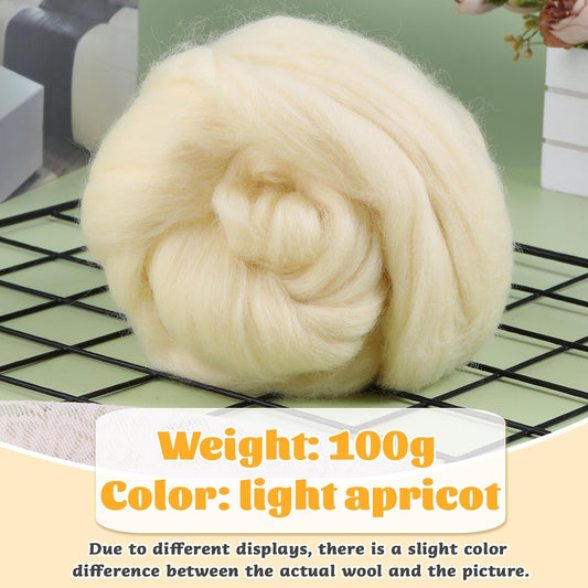 3.53oz Wool Roving Yarn, Wool Felting Supplies, Pure Wool, Chunky Yarn, Spinning Wool Roving for Needle Felting Wet Felt DIY Hand Spinning (Light Apricot)