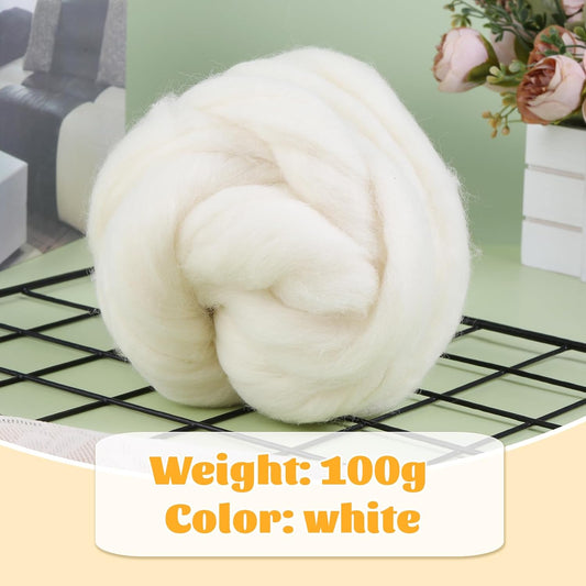 3.53oz Wool Roving Yarn, Wool Felting Supplies, Pure Wools, Chunky Yarn, Spinning Wool Roving for Needle Felting Wet Felting DIY Hand Spinning (White)