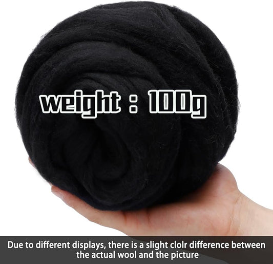 3.53oz Wool Roving Yarn, Wool Felting Supplies, Pure Wools, Chunky Yarn, Spinning Wool Roving for Needle Felting Wet Felting DIY Hand Spinning (Black)