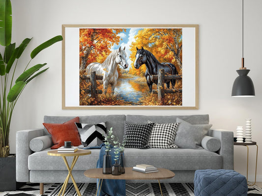 Moohue Art Crafts 14ct Counted Cross Stitch Patterns Kits Animals Horses Printed Stamped Cross Stitch Kits for Adults Needlepoint Kits (Animals Handsome Horses)