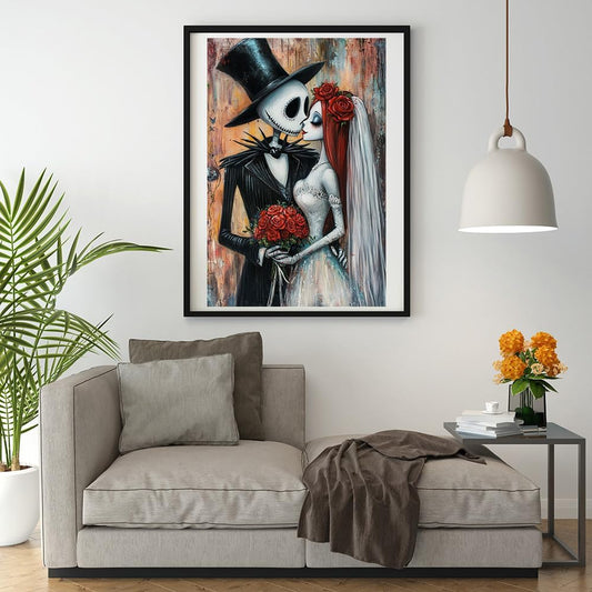 Moohue 14ct Counted Stamped Cross Stitch Kits for Adults Skulls Couple Roses Printed Cross Stitch Patterns Art Crafts Cross Stitch Supplies (Skeleton Couple)