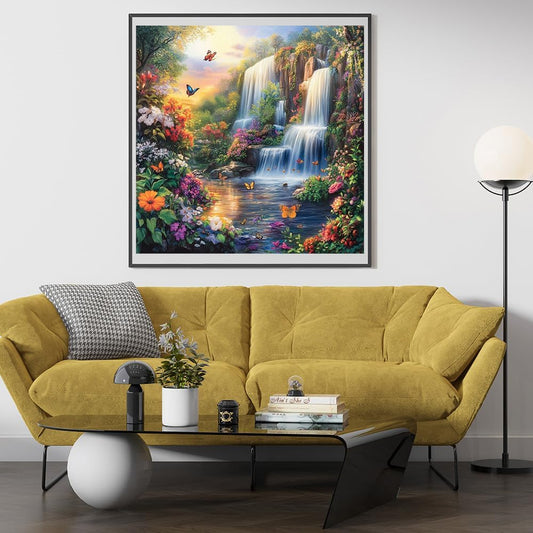 14ct Counted Stamped Cross Stitch Kits for Adults Mountain Waterfall Flowers Printed Cross Stitch Patterns Art Crafts Cross Stitch Supplies (Waterfall Mountain)