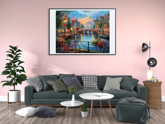 Moohue 14ct Counted Stamped Cross Stitch Kits for Adults City Printed Cross Stitch Patterns Art Crafts Cross Stitch Supplies (Beautiful City)