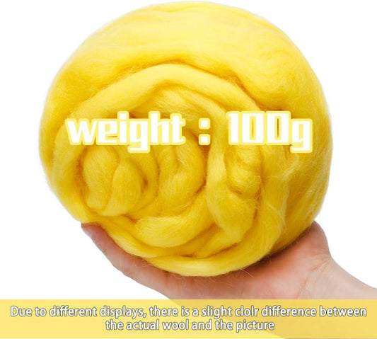 3.53oz Wool Roving Yarn, Wool Felting Supplies, Pure Wools, Chunky Yarn, Spinning Wool Roving for Needle Felting Wet Felting DIY Hand Spinning (Bright Yellow)