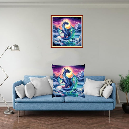 Fanxvivy Stamped Cross Stitch Kits for Adults Beginners Pillow Needlepoint Kit with Embroidery Pattern Needlework Kit Prestamped Stitches Kit 11CT Cross Stitching-Glacier Dragon 18x18 inch