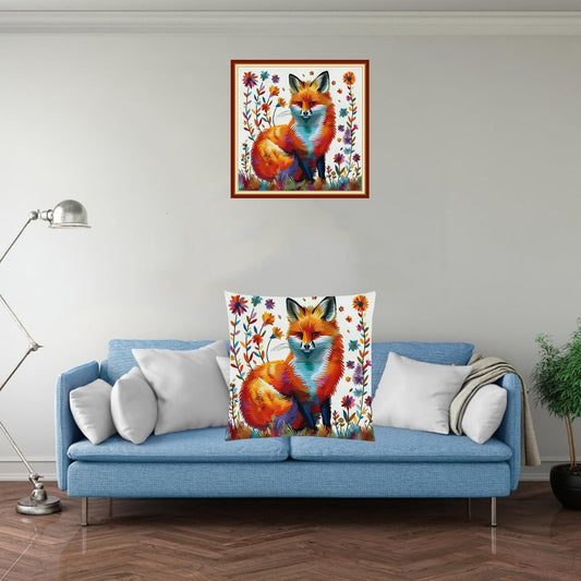Fanxvivy Stamped Cross Stitch Kits for Adults Beginners Pillow Needlepoint Kit with Embroidery Pattern Needlework Kit Prestamped Stitches Kit 11CT Cross Stitching-Colorful Fox 18x18 inch