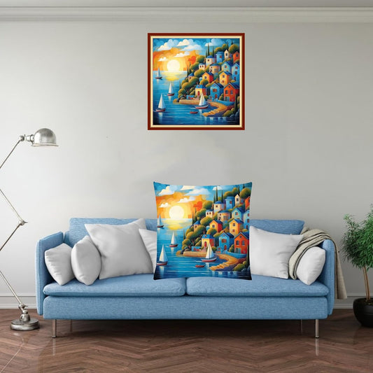 Fanxvivy Stamped Cross Stitch Kits for Adults Beginners Pillow Needlepoint Kit with Embroidery Pattern Needlework Kit Prestamped Stitches Kit 11CT Cross Stitching-Seaside Scenery 18x18 inch