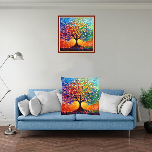 Stamped Cross Stitch Kits for Adults Beginners Pillow Needlepoint Kit with Embroidery Pattern Needlework Kit Prestamped Stitches Kit 11CT Cross Stitching-Colorful Tree 18x18 inch