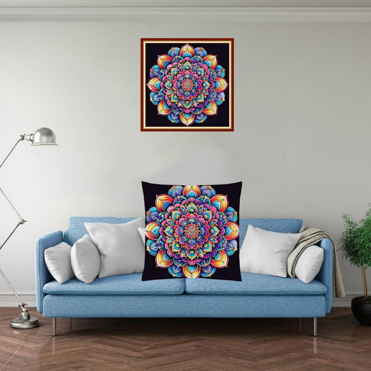 Fanxvivy Stamped Cross Stitch Kits for Adults Beginners Pillow Needlepoint Kit with Embroidery Pattern Needlework Kit Prestamped Stitches Kit 11CT Cross Stitching-Magic Mandala 18x18 inch