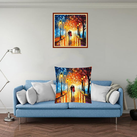 Fanxvivy Stamped Cross Stitch Kits for Adults Beginners Pillow Needlepoint Kit with Embroidery Pattern Needlework Kit Prestamped Stitches Kit 11CT Cross Stitching-Lovers Walk 18x18 inch