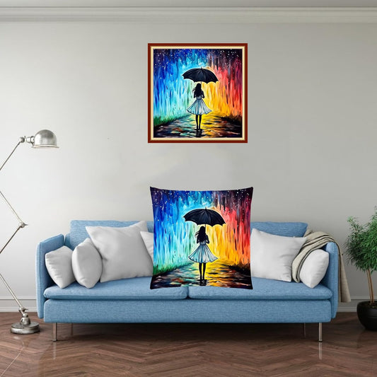 Fanxvivy Stamped Cross Stitch Kits for Adults Beginners Pillow Needlepoint Kit with Embroidery Pattern Needlework Kit Prestamped Stitches Kit 11CT Cross Stitching-Umbrella Girl 18x18 inch