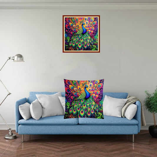 Fanxvivy Stamped Cross Stitch Kits for Adults Beginners Pillow Needlepoint Kit with Embroidery Pattern Needlework Kit Prestamped Stitches Kit 11CT Cross Stitching-Colorful Peacock 18x18 inch