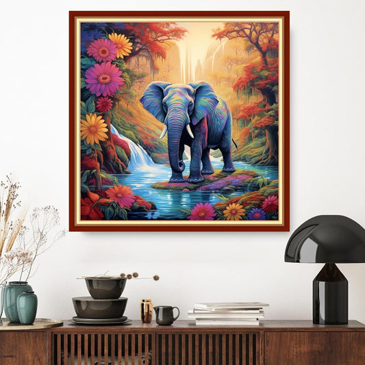 Dimxvean Cross Stitch Kit, Elephant Flowers 18x18 inch, 11CT, Multicolor, All Ages, Unisex, Modern, HD Preprint, Extra Lines Provided